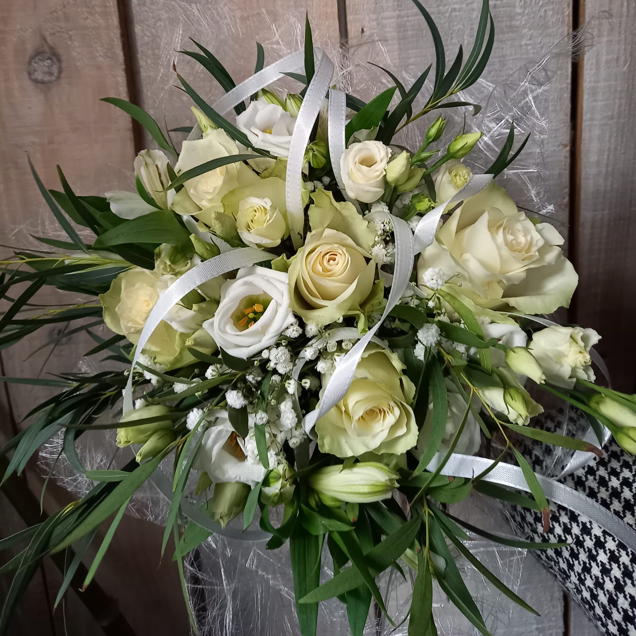 ROSE. LISIANTHUS. GYPSOPHILE. VERDURE