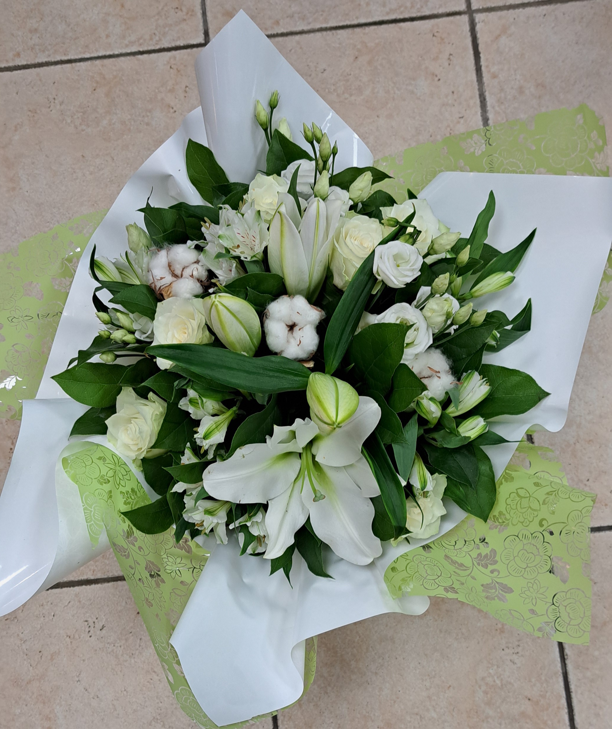 AVEC DU LIS BLANC ET FLEURS BLANCHES