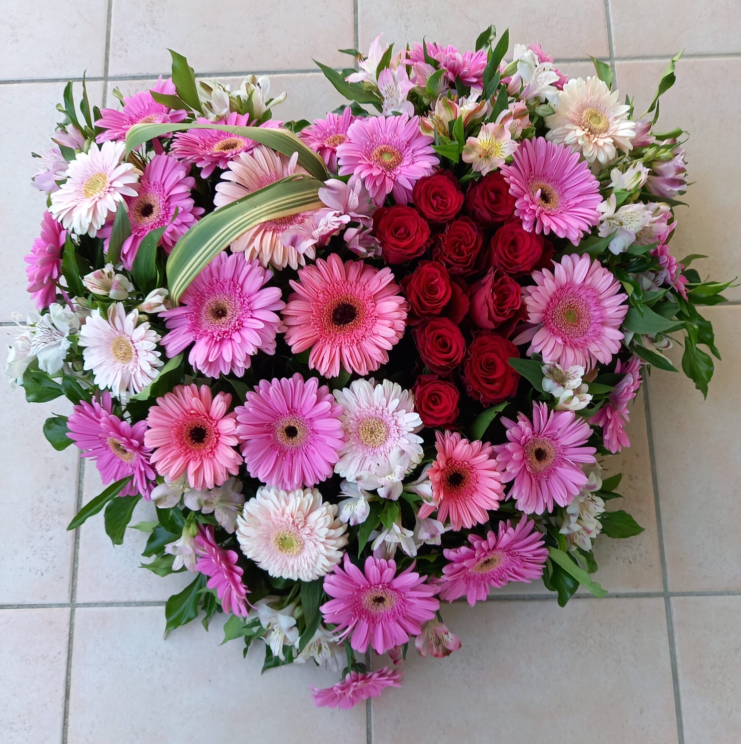 COEUR DANS LES TONS ROUGES ET CAMAIEUX DE ROSES