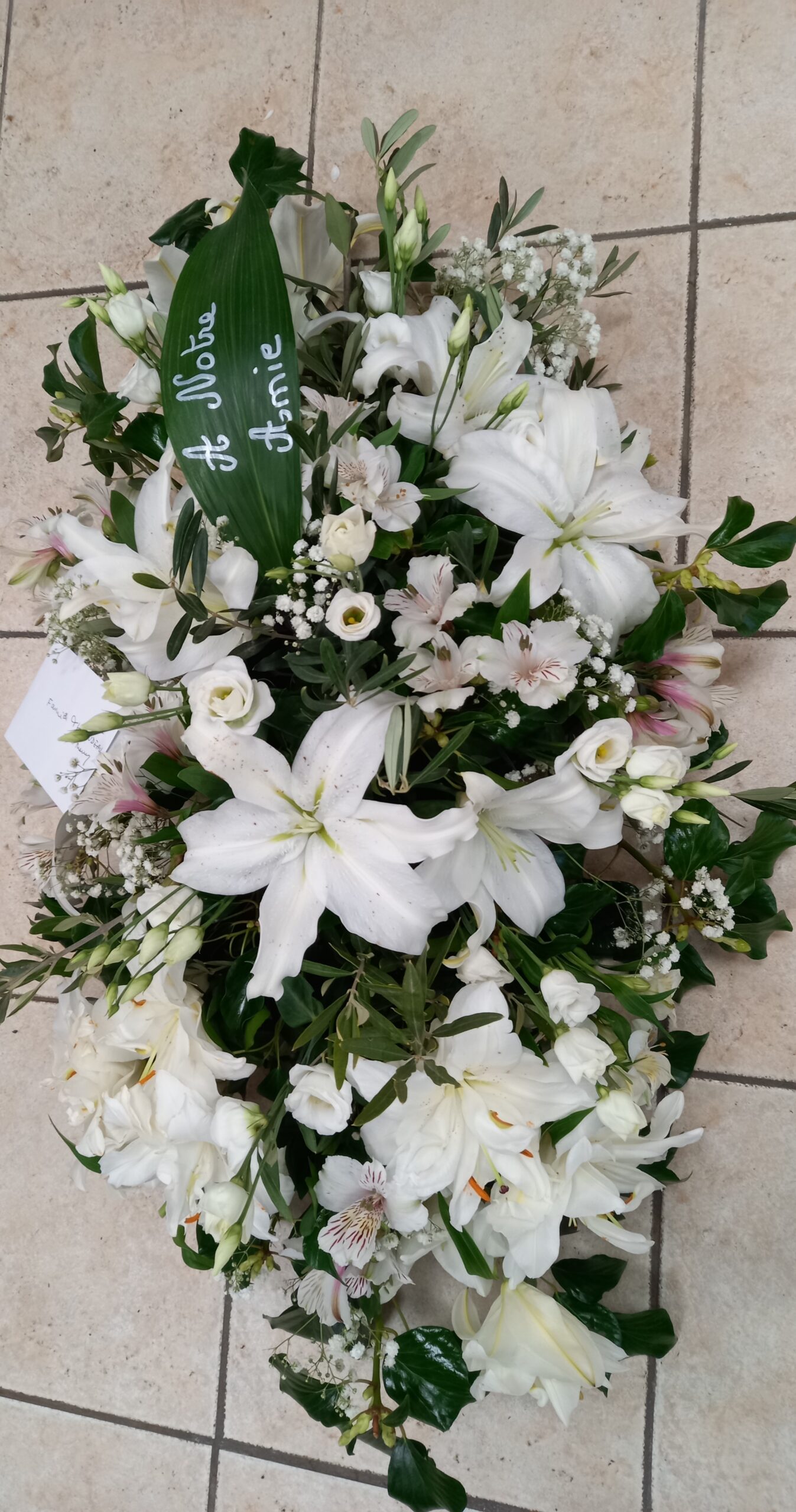 Devant de tombe compostion de couleur blanche